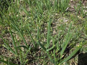 20250429 CLOSER Egyptian walking onions ready in Compostville box 4 SMALLER