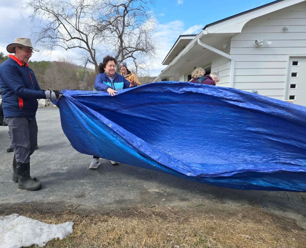 Garden housekeeping includes placing tarps over and under (compost, straw bales, and more), drying tarps, and folding tarps.