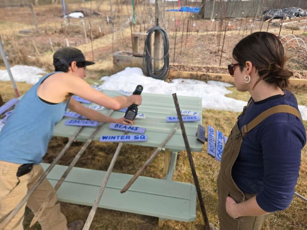 In the first work parties of the garden season, gardeners sorted seeds, planted early greens and peas, and began working as a team to accomplish the garden’s ongoing cycles of creating food to live—together.